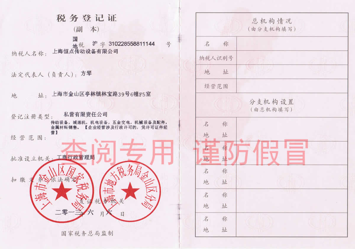 上海恒點減速機營業執照
