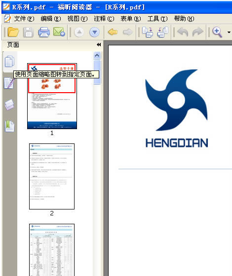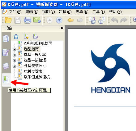 4: 打開一個PDF文件後,本例以打開 恒點傳動公司的R系列産品爲示範,看下軟件的左上角,如下圖 :