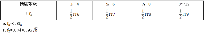 d.中心距極限偏差fa取IT值,如表A2