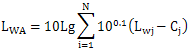 1/1倍頻帶或1/3倍頻帶聲功率級合成A聲功率級的方法