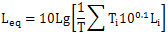 T是時間周期,Ti是A聲級爲Li的時間 。Leq也可用積分聲級計測得。