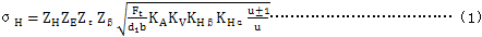 5.1.1漸開線圓柱齒輪齒面接觸應力σH按式(1)計算: