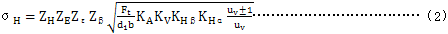 5.1.2錐齒輪齒面接觸應力σH按式(2)計算:
