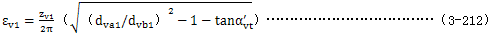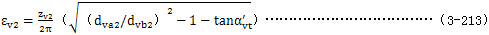 式中εv­——齒頂重合度 ,取εv1­或εv2­中的較大者,εv1­及εv2­由公式(3-212)及(3-213)確定。