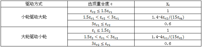 重合度系數Xε是将假定載荷全部作用於小輪齒頂時的局部瞬時溫升θflaE折算成沿沿齧合線的積分平均溫升θflaint的系數。