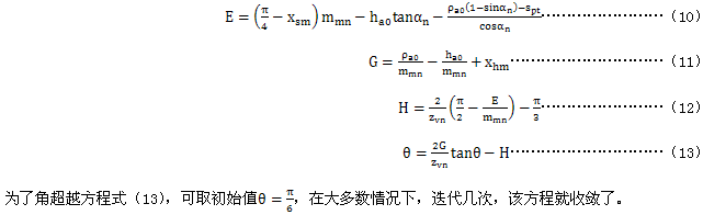 爲瞭計算齒根危險截面弦齒厚SFn和彎曲力臂hFa,首先要確定輔助值E、G、H和θ: