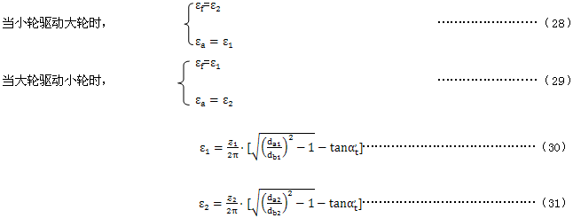 重合度系數Kε是考慮在忽略載荷分配時,将小輪齒頂的閃溫值轉換爲沿齧合線閃溫平均值的系數。重合度系數可以用齒高重合度ε1與ε2以及它們的和εa來表示。Xε的公式是基於假定沿齧合線的閃溫是線性分布的。這種方法的可能誤差将不會超過5%,且偏於安全。