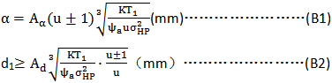 在初步設計齒(chǐ)輪時,根據齒(chǐ)面接觸(chù)強度,可按下列公式之一估算齒(chǐ)輪傳動的尺寸: