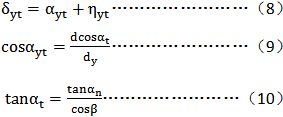 砧的尺寸應選擇得使其在齒槽中大緻在分度圓的位置接觸齒面,棱柱的半角δyt可以用下面的近似方法來確定,此處δyt、ayt和ηyt爲在測量圓上接觸的各角(見圖8)。