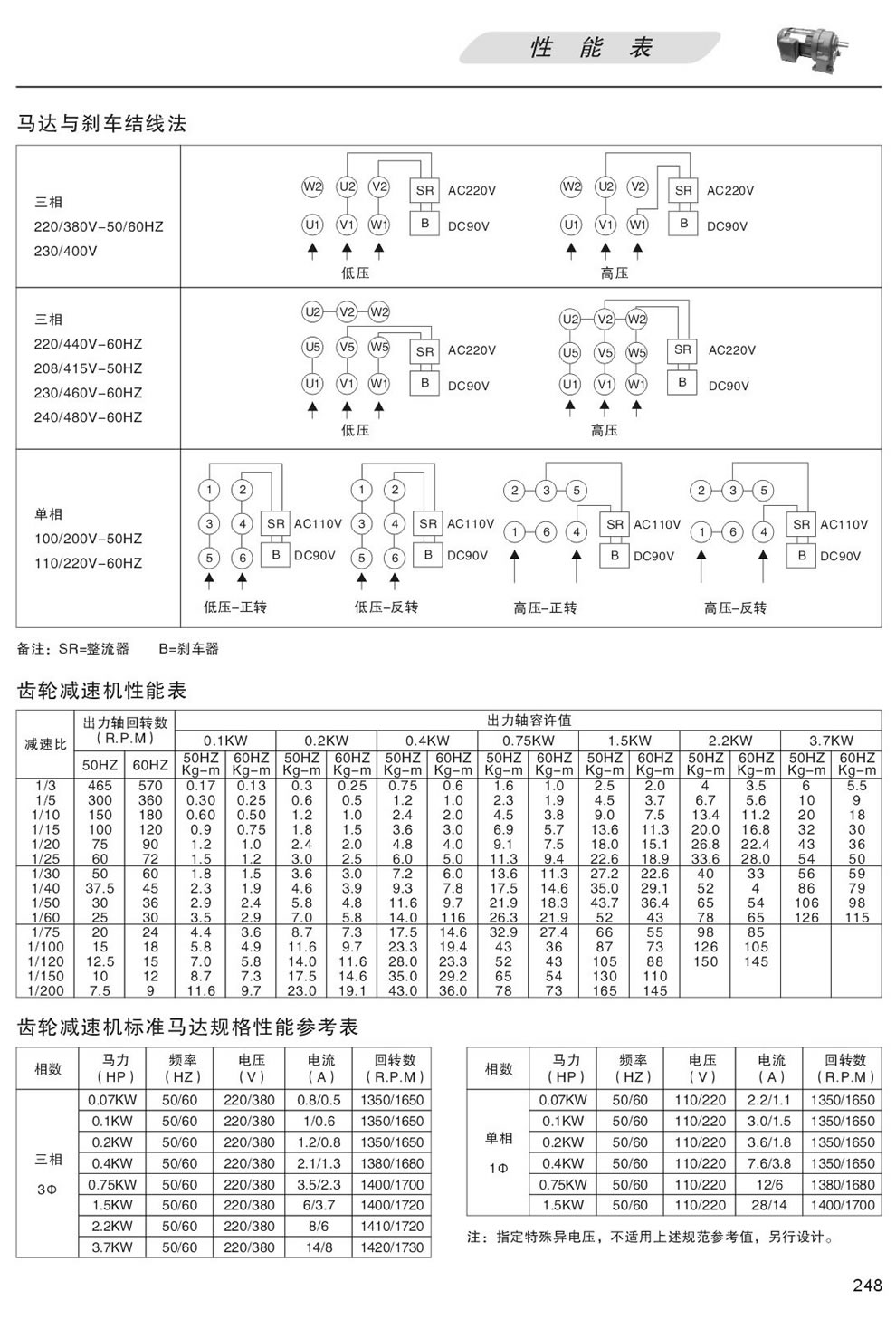G系列接線方法及性能表 - G全封閉齒輪減速電機